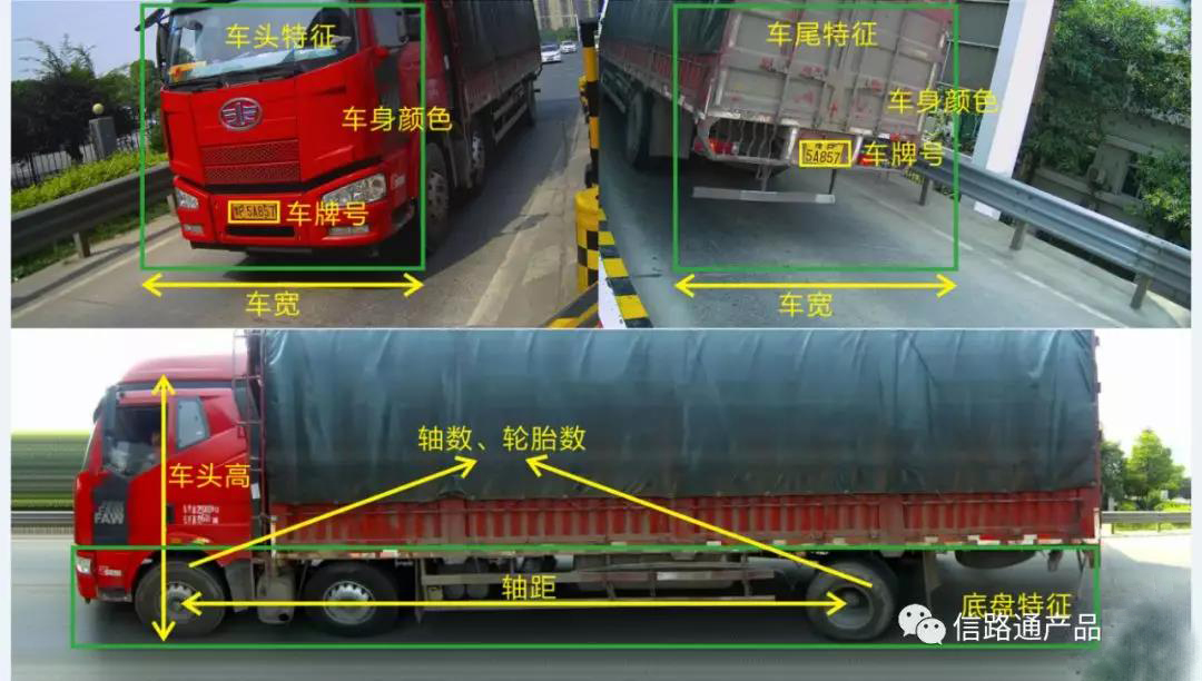 2)?車型識別:精準識別車型,區(qū)分客車、貨車、分別根據(jù)軸數(shù),長度,定義車輛類型.
