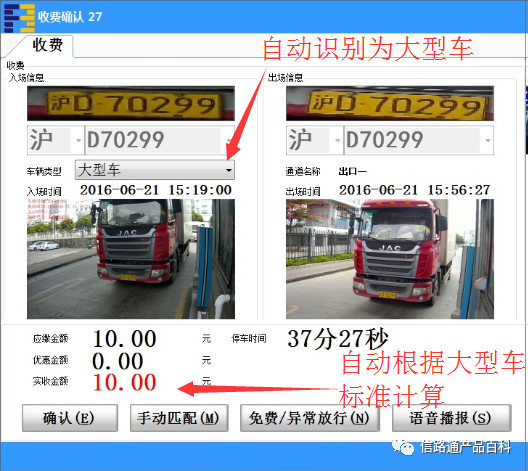 系統(tǒng)自動計算對應(yīng)車型的繳費金額,無需人工選擇,避免至少10%的收費漏洞 |